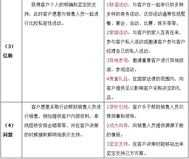 (2)促成交易:采用暗示的方式在避免客戶反感的情形下自然地促進(jìn)客戶承諾購買,常用的方法包括直接建議法、選擇法、限時(shí)促銷法、總結(jié)利益等方法。