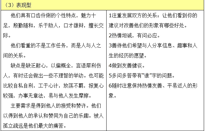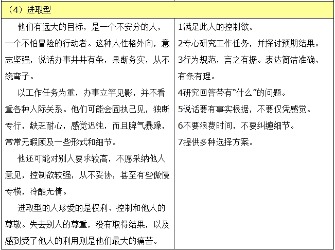 客戶關(guān)系分成認(rèn)識(shí)、約會(huì)、信賴和同盟由低到高的四個(gè)階段。當(dāng)銷售人員發(fā)現(xiàn)客戶內(nèi)存在明確銷售機(jī)會(huì)時(shí),采取銷售組合迅速推進(jìn)客戶關(guān)系。不同的客戶有不同的性格特點(diǎn),因此推進(jìn)客戶關(guān)系的前提是識(shí)別客戶溝通風(fēng)格。客戶的溝通風(fēng)格可以大概分成分析型、進(jìn)取型、表現(xiàn)型和親切型四種類型。